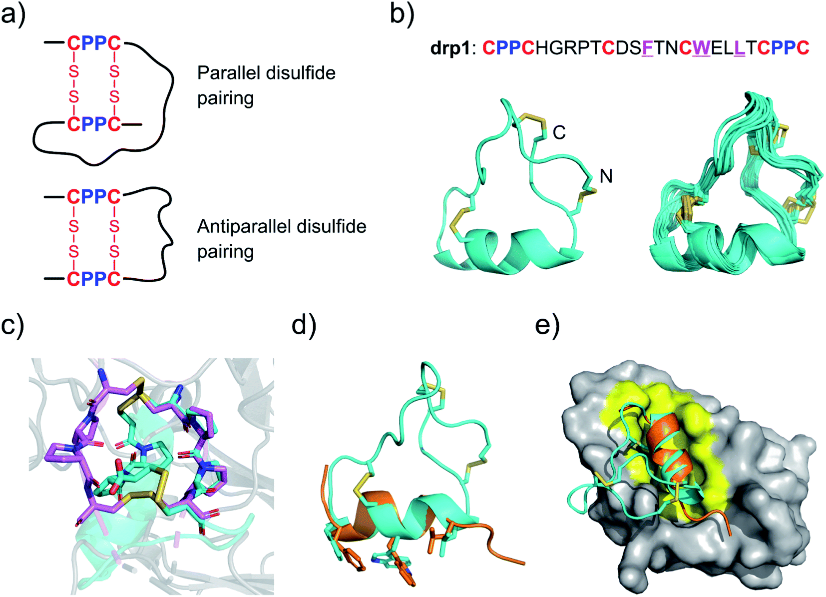 The engineering of naturally occurring disulfide-rich peptides (DRPs) has been significantly hampered by the difficulty of manipulating disulfide pairing. New DRPs that take advantage of fold-directing motifs and noncanonical thiol-bearing amino acids are easy-to-fold with expected disulfide connectivities, representing a new class of scaffolds for the development of peptide ligands and th...